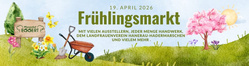Von 10.00 bis 17.00 Uhr erwarten Sie am Sonntag, dem 19. April 2026, wieder viele Ausstellerinnen und Aussteller auf dem Gelände unseres Pflanzenhofs. Auch diesmal sind die Landfrauen aus Hanerau-Hademarschen wieder dabei und versorgen uns mit leckerem Kuchen und Kaffee. Für ausreichend Parkplätze haben wir auch gesorgt. Nun muss einfach das Wetter wieder mitspielen und schon können wir uns gemeinsam auf die schöne, wärmere Jahreszeit einstimmen.